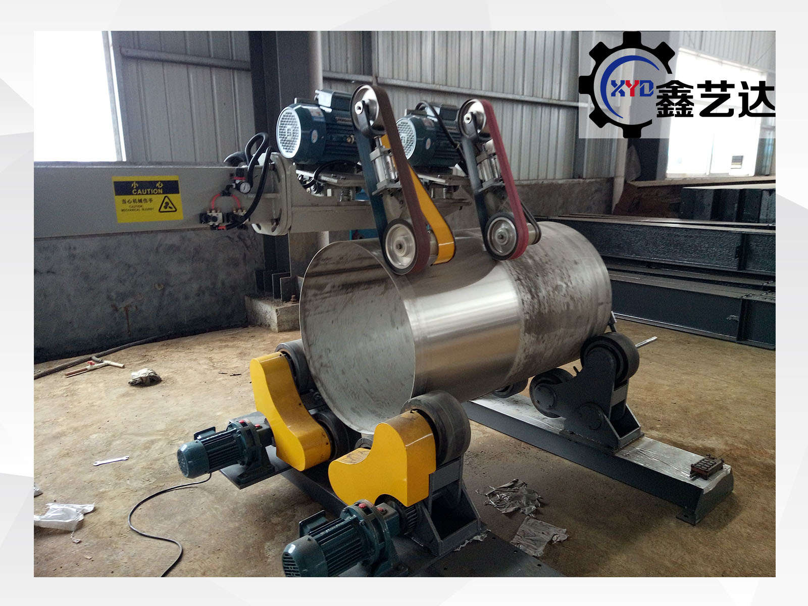 設備由橫梁、立柱、底座、磨頭、罐體滾臺、控制柜等組成。適合罐體φ800mm-3000mm內(nèi)外拋光,選配罐體滾臺載重范圍:1-20噸。