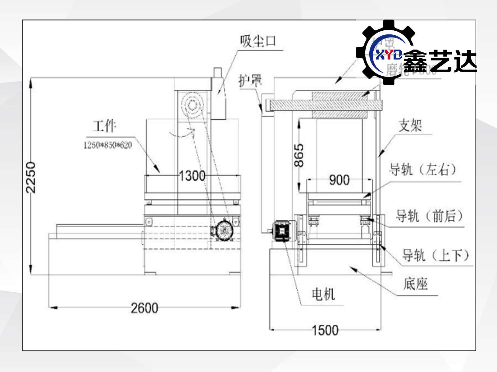 1.外形尺寸:長x寬x高(mm)=2600x1500x2250